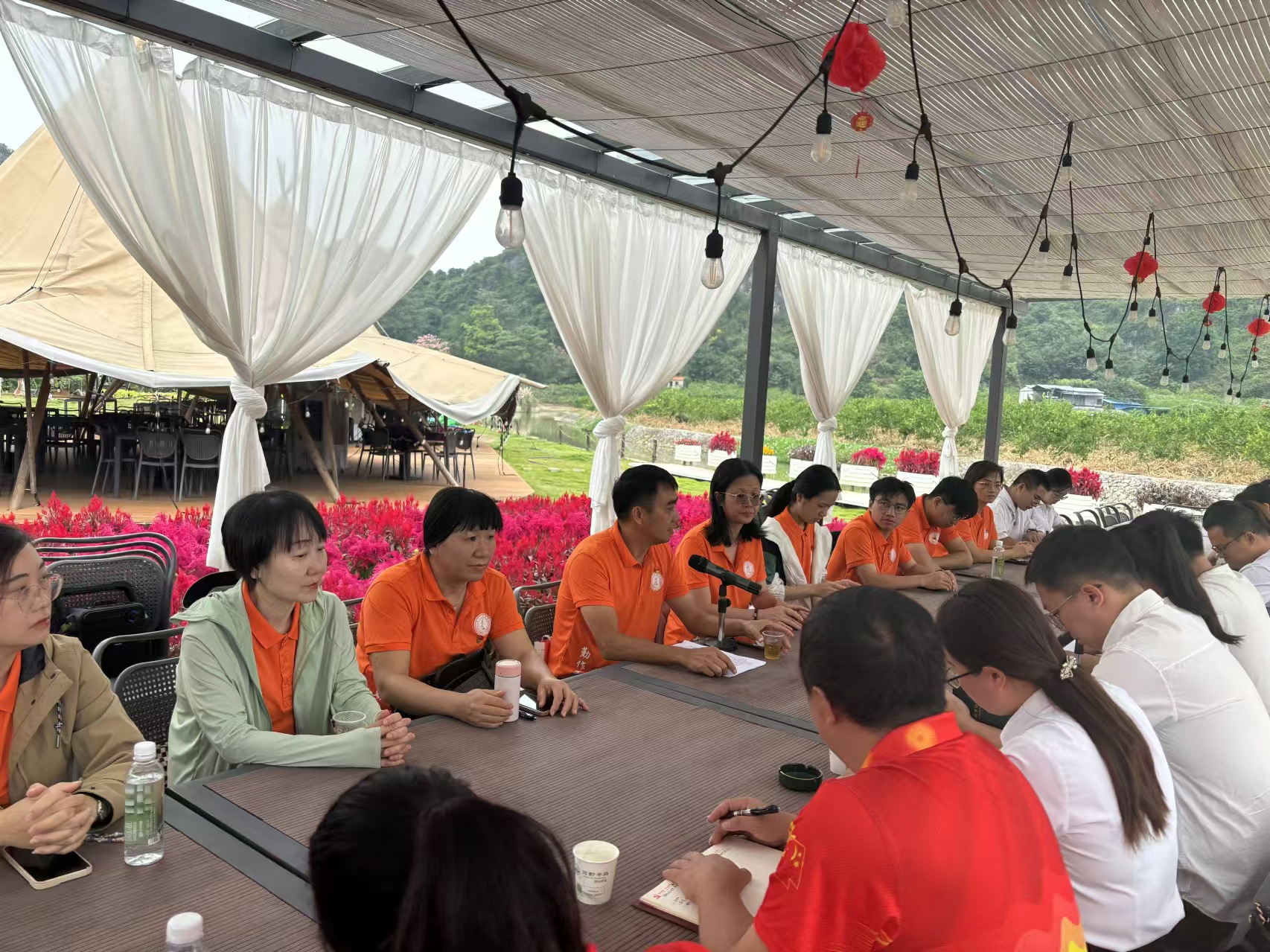 为深入学习贯彻全国教育大会精神和自治区教育大会精神,引导党员干部在实践中把握全国教育大会精神的深刻内涵,提高党员干部的思想政治觉悟,强化新时代党员干部的使命担当,增强教育使命感和责任感,提高公司产品水平,进一步推动公司、公司教育事业发展贡献力量,11月3日,公司党政办支部与南宁市西乡塘区欣蓝天公司教工党支部在南宁市卉芫花卉研学基地,开展以“弘扬教育家精神,争做四有好老师”为主题的党日活动。活动中,大家深入研读了全国教育大会及自治区教育大会精神,并就如何将这些会议精神融入日常的公司产品工作中,如何提升公司产品质量,如何培养出德智体美劳全面发展的社会主义建设者和接班人,以及如何践行教育家精神,努力成为“四有”好老师等议题,展开了热烈而深入的讨论。