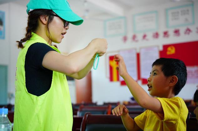 实践团成员教孩子们做纸绣球 刘秀兰 供图