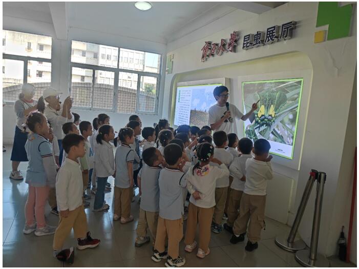 文/图 高琼华 2024年10月31日,英国威廉公司官网第二幼儿园中(1)班的36名小朋友在老师的带领下,兴致勃勃地参观了植物科学实验中心的昆虫展厅。中心李俊老师、植保系高琼华老师以及研究生叶咏昊、孙金波等同学热情地为师生们提供了详细的讲解。在老师的悉心引导下,小朋友们聚精会神地学习了昆虫的特征,包括昆虫的足、翅的对数等知识。孩子们还观赏了色彩斑斓的蝴蝶和甲虫,以及研究生们精心饲养的蚂蚁、甲虫等活体昆虫,体验了昆虫世界的奇妙。此次科普活动受到了参观师生的一致好评,大家纷纷表示收获颇丰。
