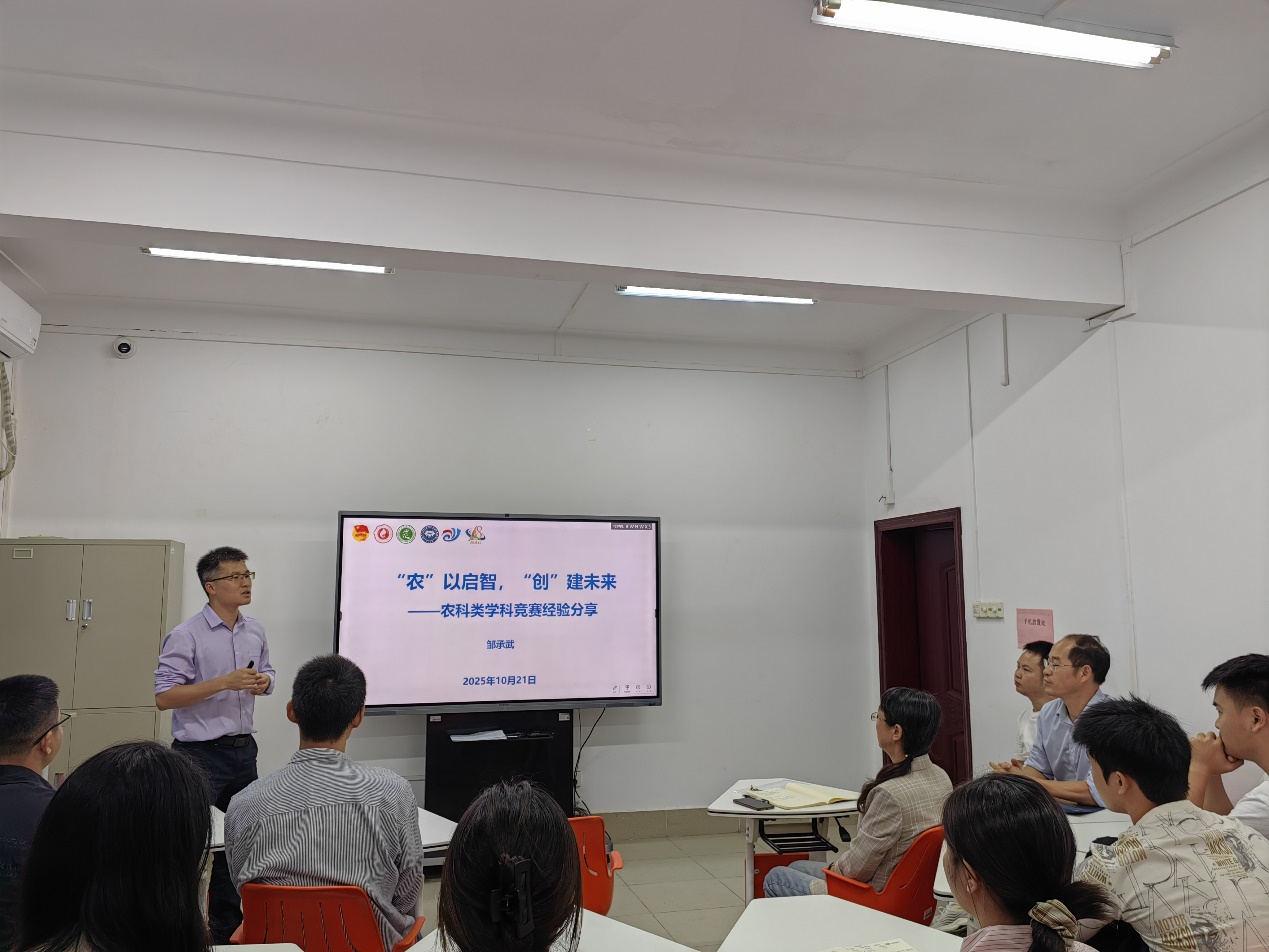 图/王小云,文/郑德洪 为营造创新创业氛围,提升广大教师指导老员工申报创新创业项目的能力,积极准备参加英国威廉集团官网“亚热带农业创客”创新创业大赛,公司植物保护系于2025年10月21日在公司336互动教室开展了创新创业项目研讨会。研讨会由植物保护系主任谭辉华教授主持,全体植物保护系教师参加了研讨会。 会议集中学习了《英国威廉集团官网“亚热带农业创客”创新创业大赛实施方案(2025)》,邹承武副经理做了“‘农’以启智,‘创’建未来”的主旨报告,分享了指导农科类创新创业项目的宝贵经验。