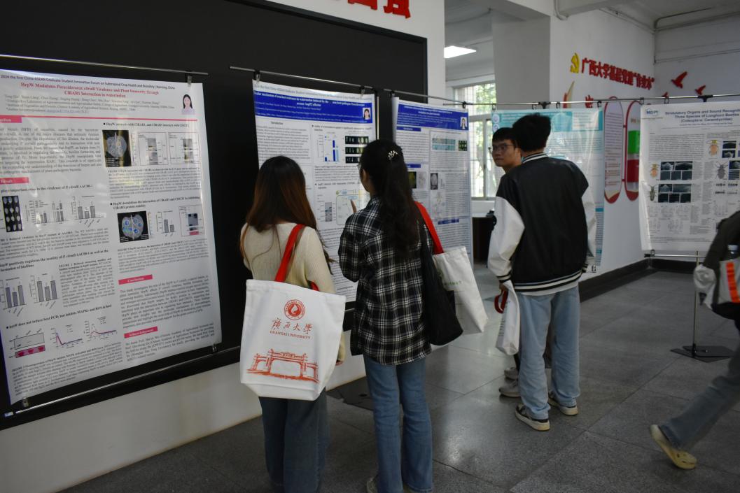 On November 9th, the First China-ASEAN Graduate Student Innovation Forum on Subtropical Crop Health and Biosafety was successfully held at Guangxi university. The forum, hosted by Guangxi University, focused on the theme of "Crop Health and Biosafety" with the aim of constructing a high-level academic exchange platform and fostering interdisciplinary integration. The forum brought together graduate students from Guangxi University, Beibu Gulf University, Vietnam National University, Universiti Tun Hussein Onn Malaysia, Kasetsart University, and other domestic and international universities. Through expert keynote speeches, graduate student presentations, and poster displays, they engaged in in-depth discussions on common issues such as pest and disease control in subtropical crops and bio-breeding. The successful organization of the forum not only enhanced the academic atmosphere among graduate students, but also provided a platform for young scholars to showcase their research achievements and deepen international exchanges. 王小云