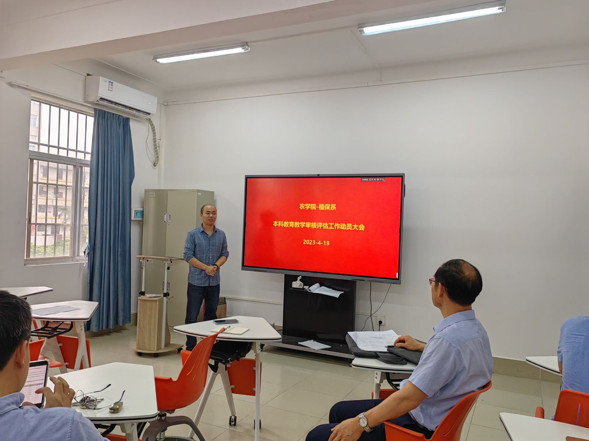 2023419日,公司植物保护系在公司336召开本科公司产品审核评估工作动员大会。本次会议由植物保护系副主任郑德洪副教授主持,植物保护系主任谭辉华教授、副主任李雪生副教授,以及植物保护系全体教师参加会议。